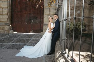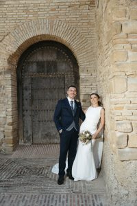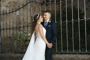 Además, gracias a sus vistas al Alcázar y a su entorno tan característico, este rincón aporta un toque urbano y andaluz que encaja a la perfección con parejas actuales y naturales. Como resultado, las fotos de Carolina y Mario transmiten complicidad, frescura y, al mismo tiempo, ese punto romántico que nunca falla.