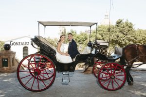 Novios Carolina y Mario en su boda en Jerez de la Frontera